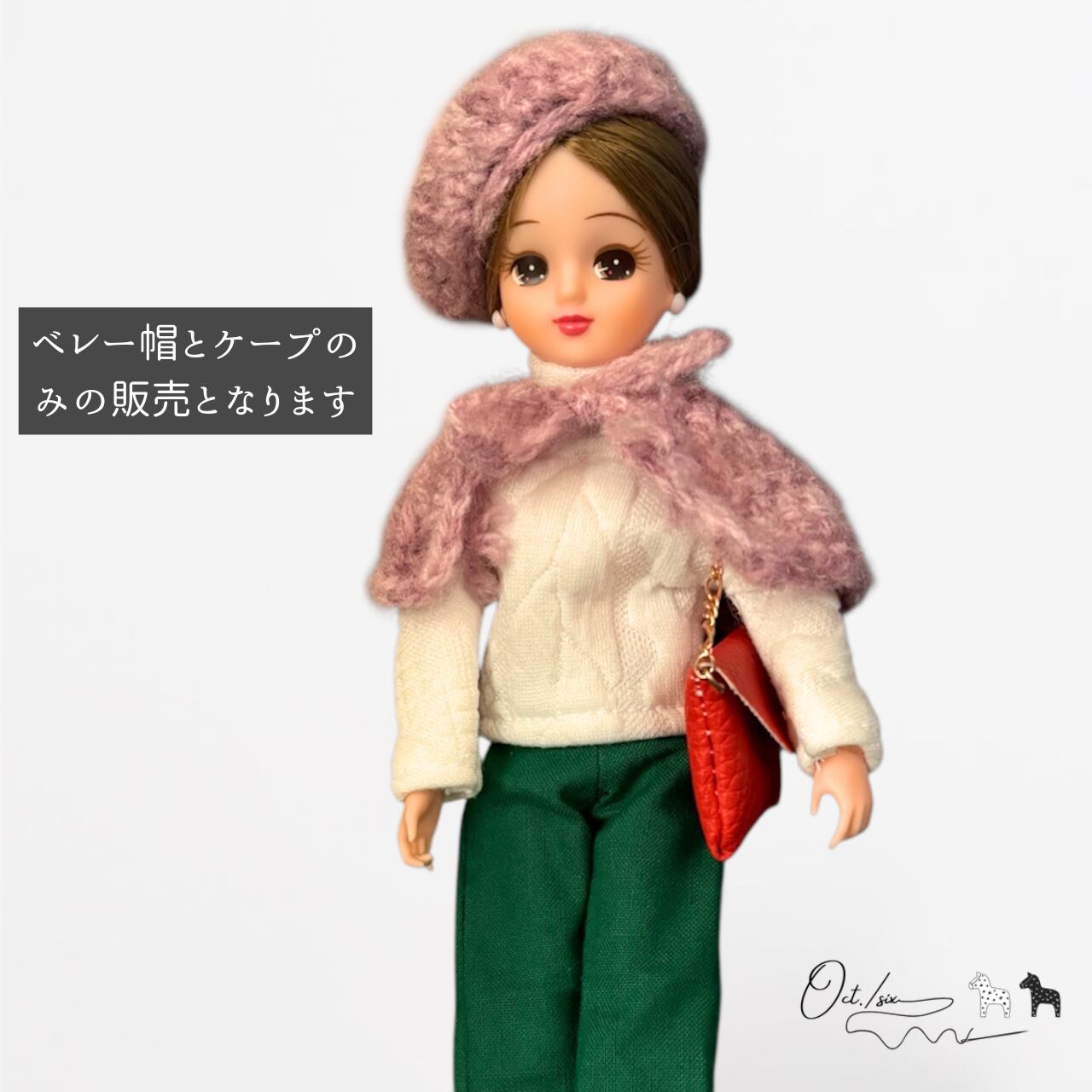 【冬物SALE】ドール用 ニット帽(ベレー帽)ケープのセット(A)
