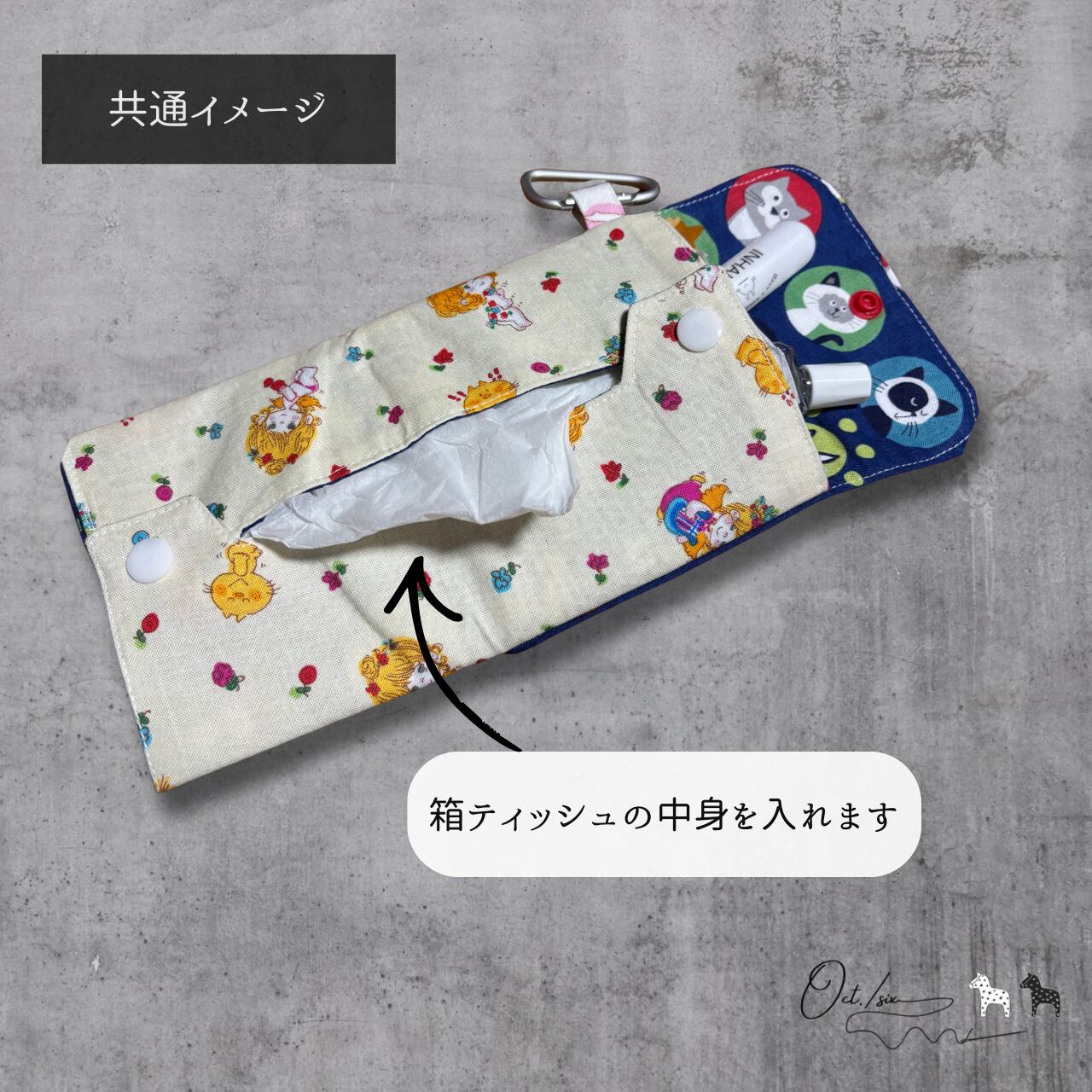 ロックでファニーなドッグ&キャット柄のボックスティッシュを詰め替えられるティッシュポーチです