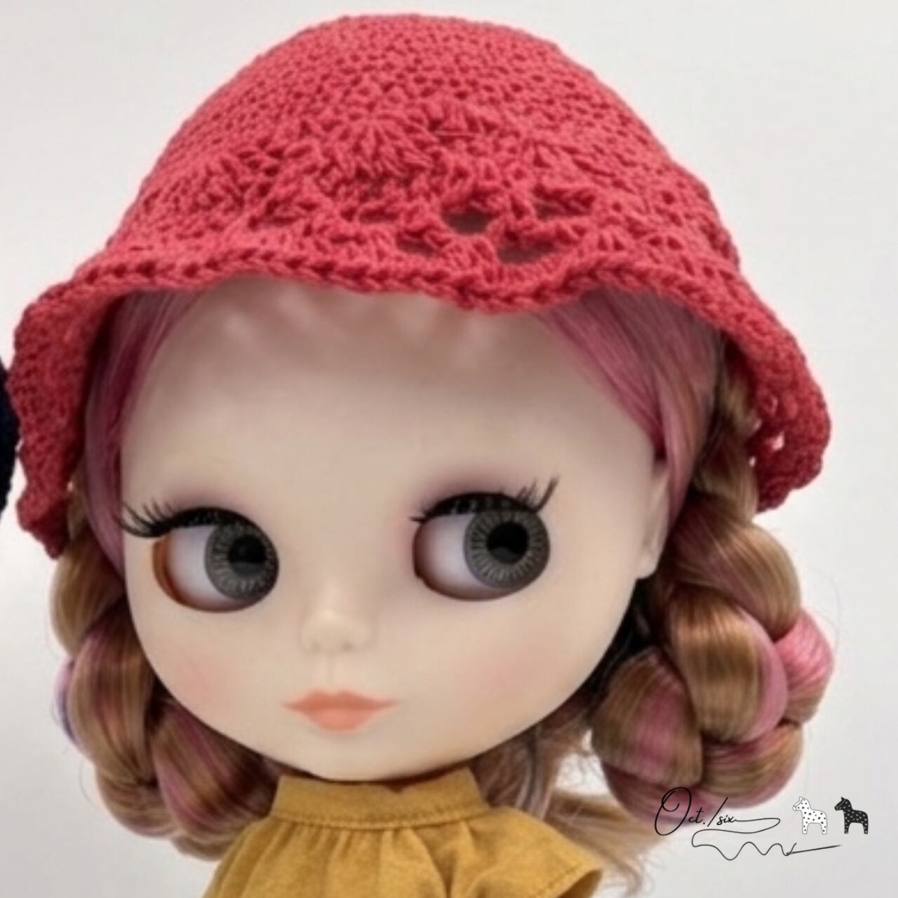 コットンの糸で編んだアイシードール・ブライスサイズのニットハットです。